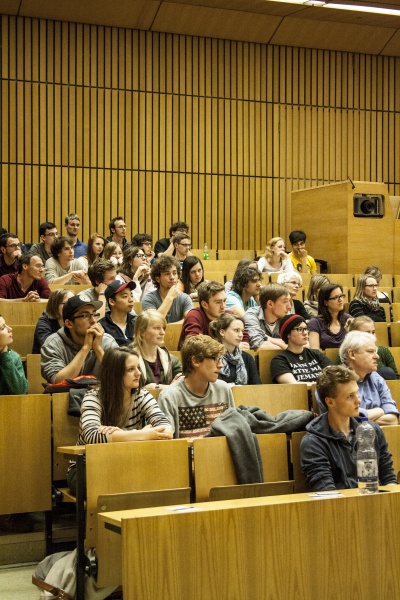 Begonnen hatte die Debatte formgemäß mit einem Antrag der Regierung, bestehend aus Nikos Bosse, Konrad Gütschow und Marie Rulfs, die auf eine Legalisierung leistungssteigender Substanzen, wie etwa Ritalin oder Modafinil, plädierten. “Wieso sollte man die enorme menschliche Leistungskapazität nicht ausschöpfen wollen, die in einer Leistungsgesellschaft wie der unsrigen gefordert wird? Die uns zu dem machen würde, was wir sein könnten?“ fragte Konrad an die zahlreichen Zuhörer gewandt. Einspruch kam von der Opposition: Eher müsse man das System an sich ändern, anstatt mit fragwürdigen Mitteln eine künstliche Adaption an die Missstände zu betreiben. Anhand von konkreten Beispielen – etwa viele Jurastudenten, die sich, getrieben von den scharfen Leistungsanforderungen, durch zwölfstündige Lerneinheiten pushen – schälten sich nach und nach die Kernfragen der Debatte heraus: Wo verläuft die Grenze zur moralischen Verwerflichkeit? Wie belastbar ist eine Gesellschaft, die Leistungsmaximierung auf Pump betreibt? Kritisch beteiligte sich das Publikum an der Diskussion, hakte nach und prüfte die Redner auf ihre Argumentationsstringenz „Wenn ihr Neuro-Enhancer legalisieren wollt, warum dann nicht auch Koks und Haschisch?“, fragte ein Zuhörer.